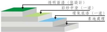 施工工藝:①防水處理:一樓地面需已做好防水處理;②素地處理:依素地狀況做好打磨、修補、除塵;